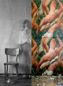 Eine Spiegelung ist auch eine Form der Wiederholung. Hier gehen beide Teile eine starke Symbiose ein. Es entstehen neue Bilder ähnlich wie in der Abklatschtechnik. Es entsteht eine besondere Spannung zwischen den beiden Bildern.