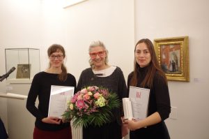 Die Preisträgerin Anja Spitzer und Anna Eisermann, Laudation, mit Dr. Karin Tuxhorn